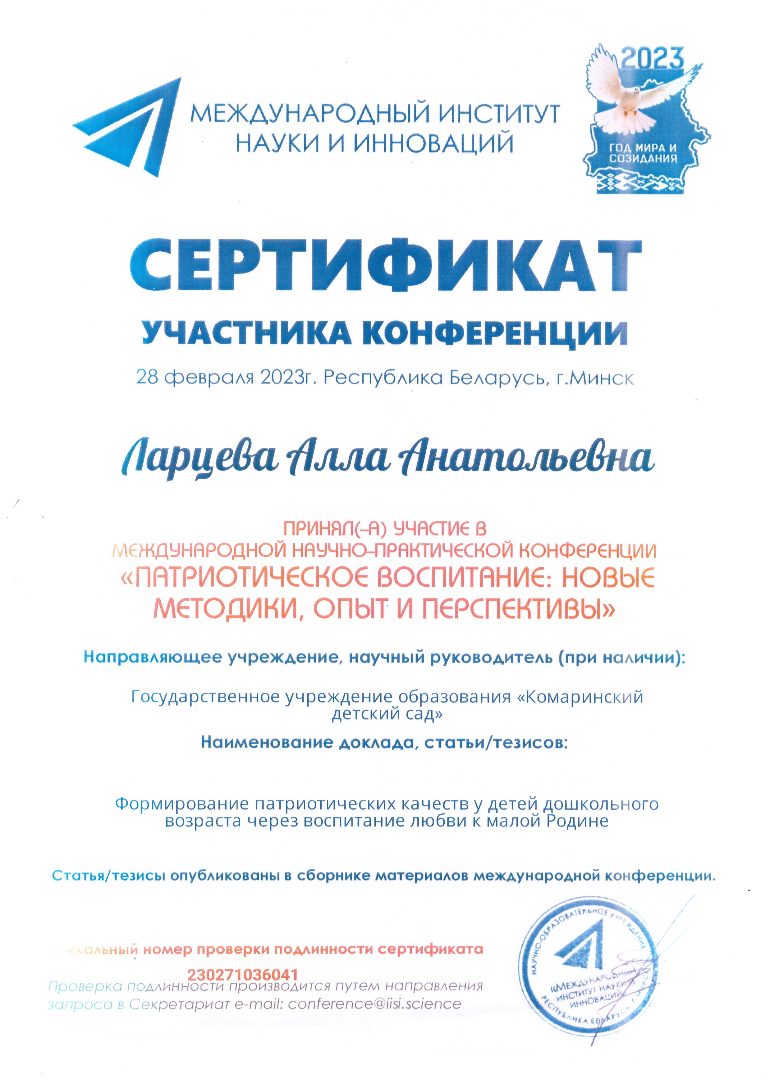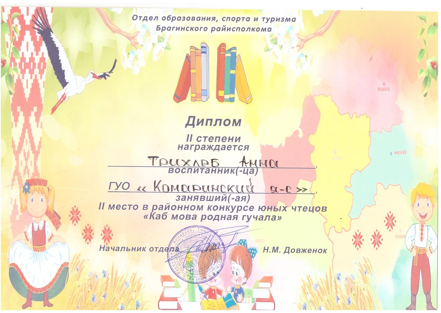 Воспитанница старшей группы «Радуга» Хмеленок Юлия отмечена дипломом 2 степени.